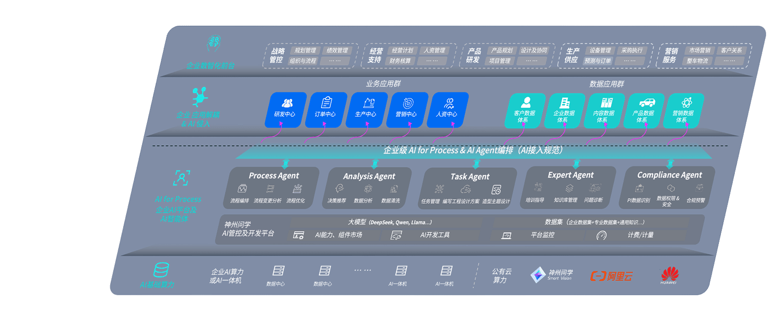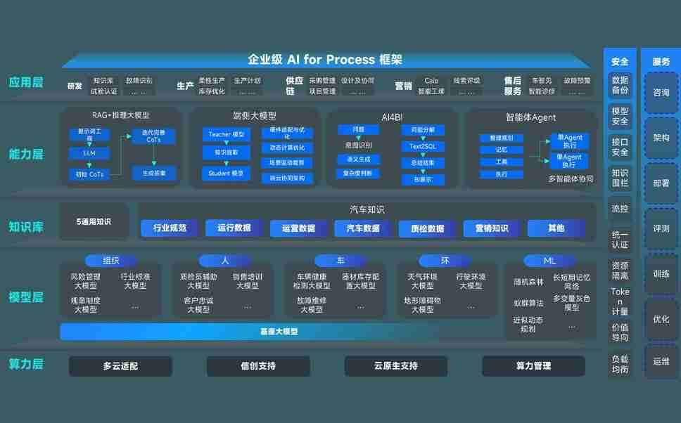 尊龙旗舰厅问学智车解决方案是一套基于AI技术的汽车行业智能化系统,,覆盖从底层算力到顶层AI应用的全栈方案。。。。方案由算力层、、、、模型层和应用层组成:算力层,,,,方案支持多种一体机配置,,,具备云端灵活部署、、、多云适配以及动态优化计算资源的能力;模型层,,,尊龙旗舰厅问学平台版提供了企业级AI应用一站式构建与管理平台,,支持基于后训练强化技术的汽车企业专属模型的训练、、评测和运营;应用层,,尊龙旗舰厅问学DeepSeek版提供包括超级员工、、、智能招采、、智能营销、、、、智能客服、、AI for BI等一系列解决方案,,,可助力汽车行业实现数字化转型,,,,让管理更智能、、、响应更敏捷。。。。