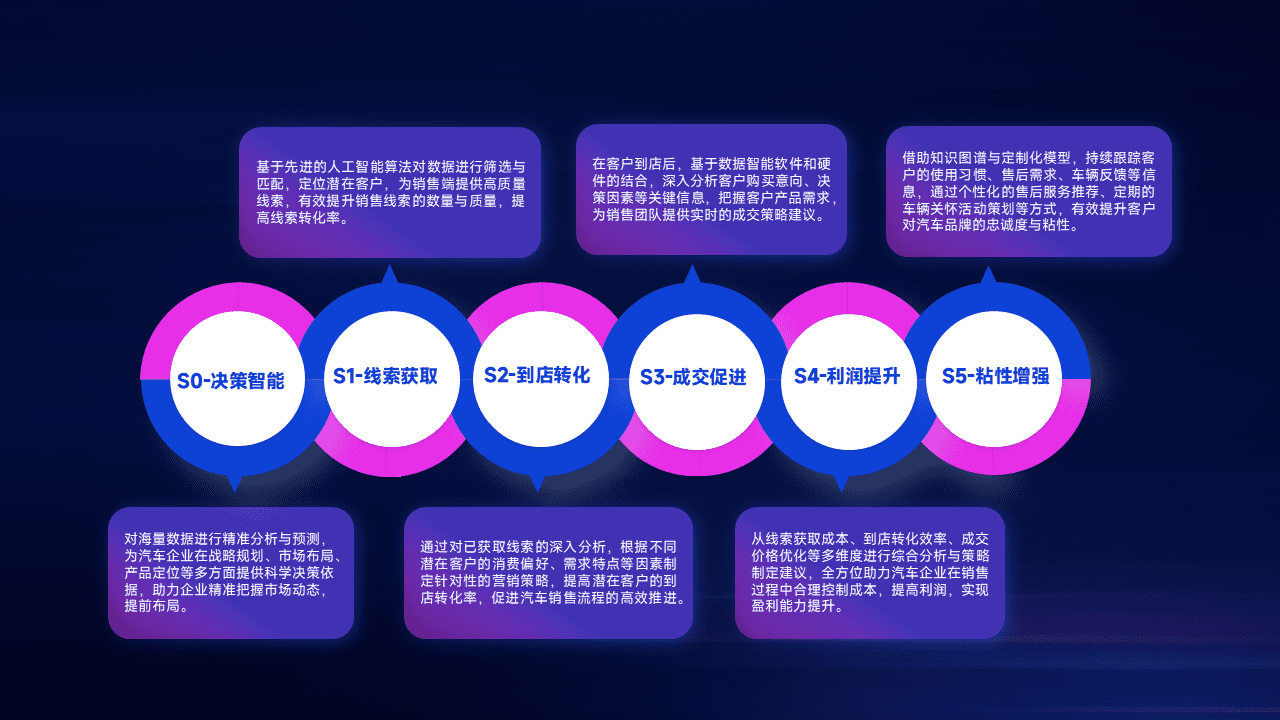 通过拓宽潜在客户来源、、优化线索分配并提高到店转化率,,以增强销售效率。。。。同时,,利用线索数据不断优化分析模型,,,,有效提升转化率,,,,扩大营销影响力。。。。